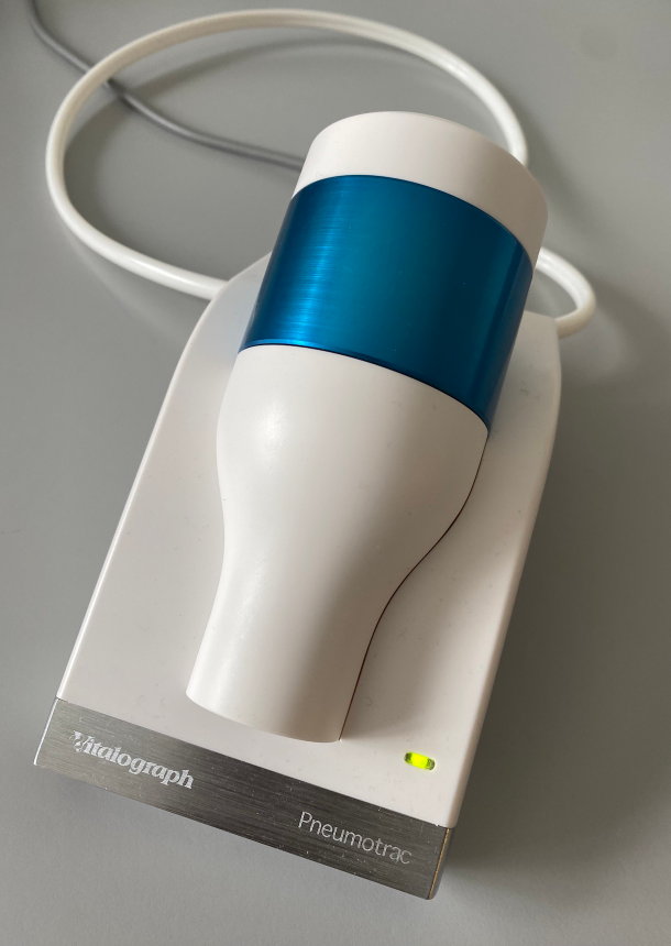 Bei der Lungenfunktionsprüfung oder Spirometrie wird gemessen, wieviel Luft die Lungen aufnehmen können, wieviel Luft ein- und ausgeatmet werden kann. Beim Einsatz eines Spirometers holt die zu testende Person tief Luft und atmet danach so kräftig und so schnell wie möglich durch den Schlauch aus. Das Aufzeichnungsgerät misst das ein- oder ausgeatmete Luftvolumen und die Dauer jedes Atemzugs. Die  Untersuchung kann jederzeit durchgeführt werden (man muss nicht nüchtern sein). Die Spirometrie wird von unseren Mitarbeitern angeleitet und dauert ca. 5 Minuten.